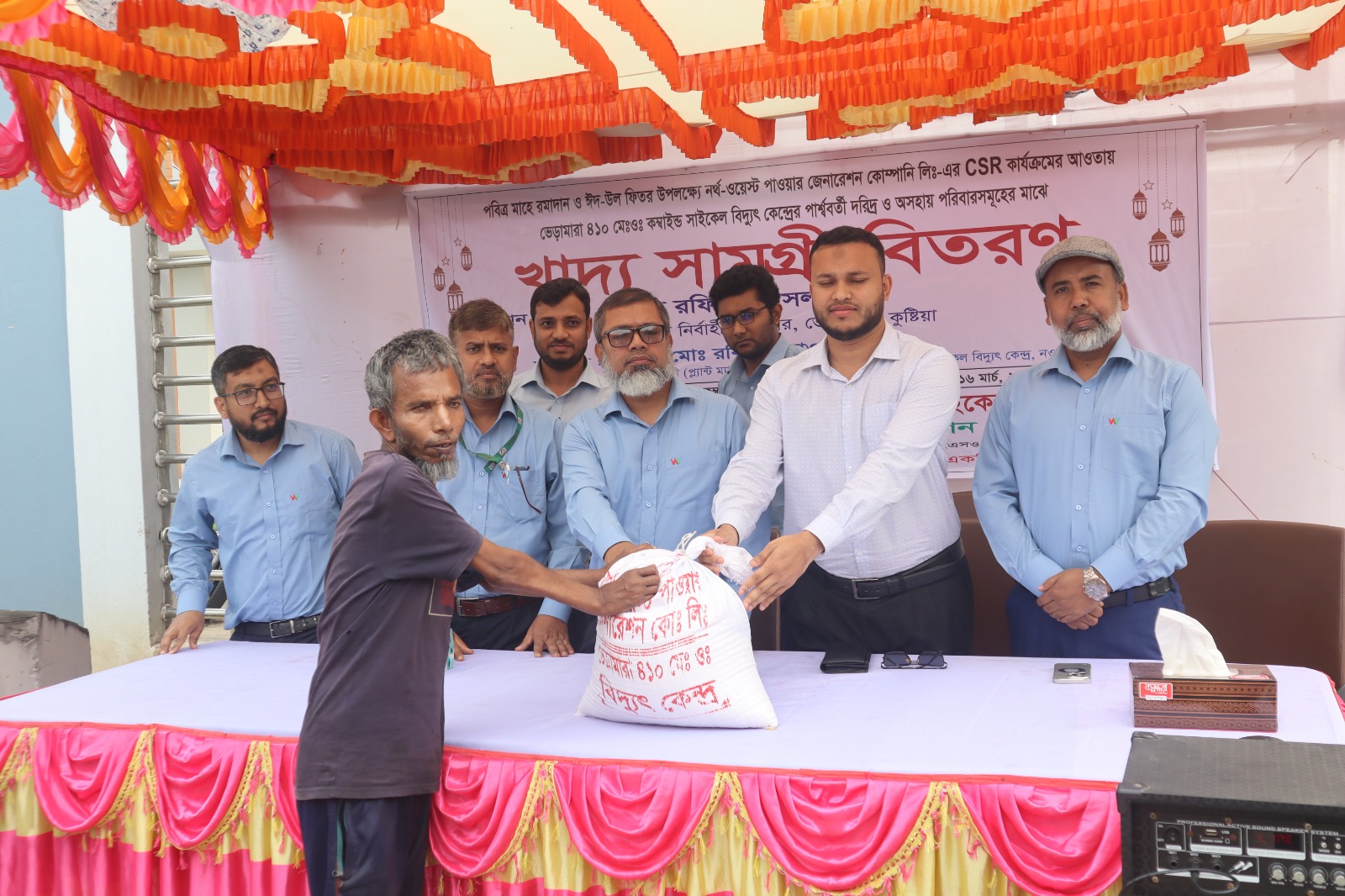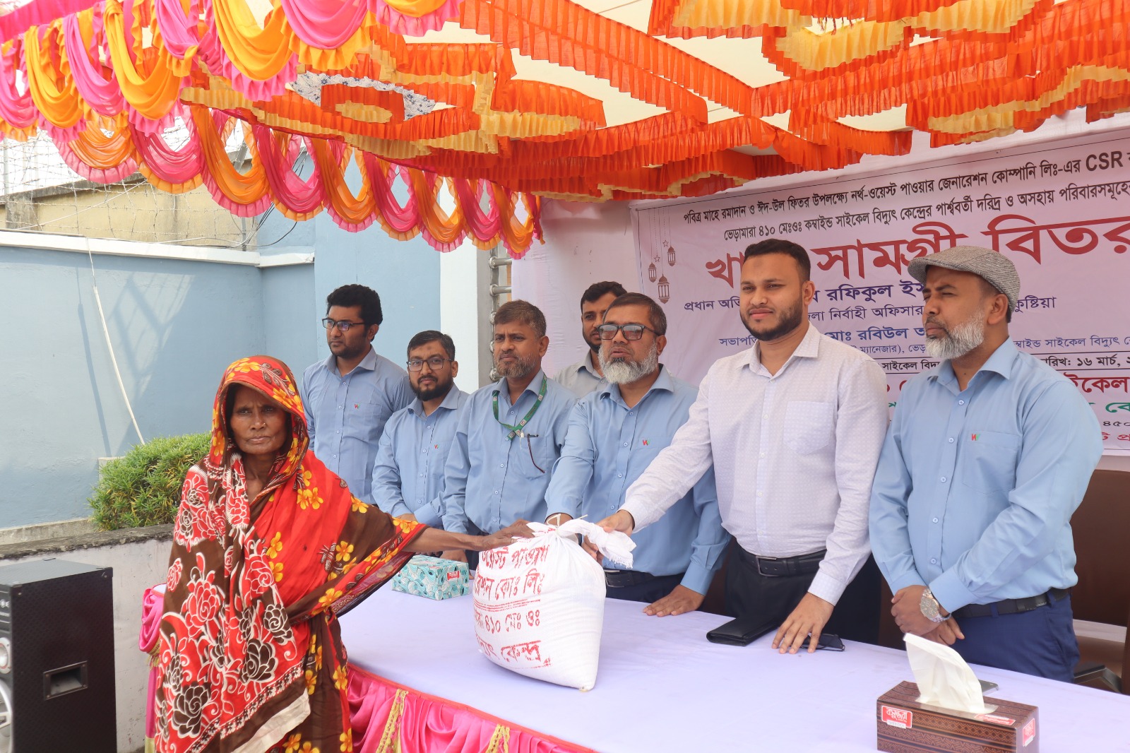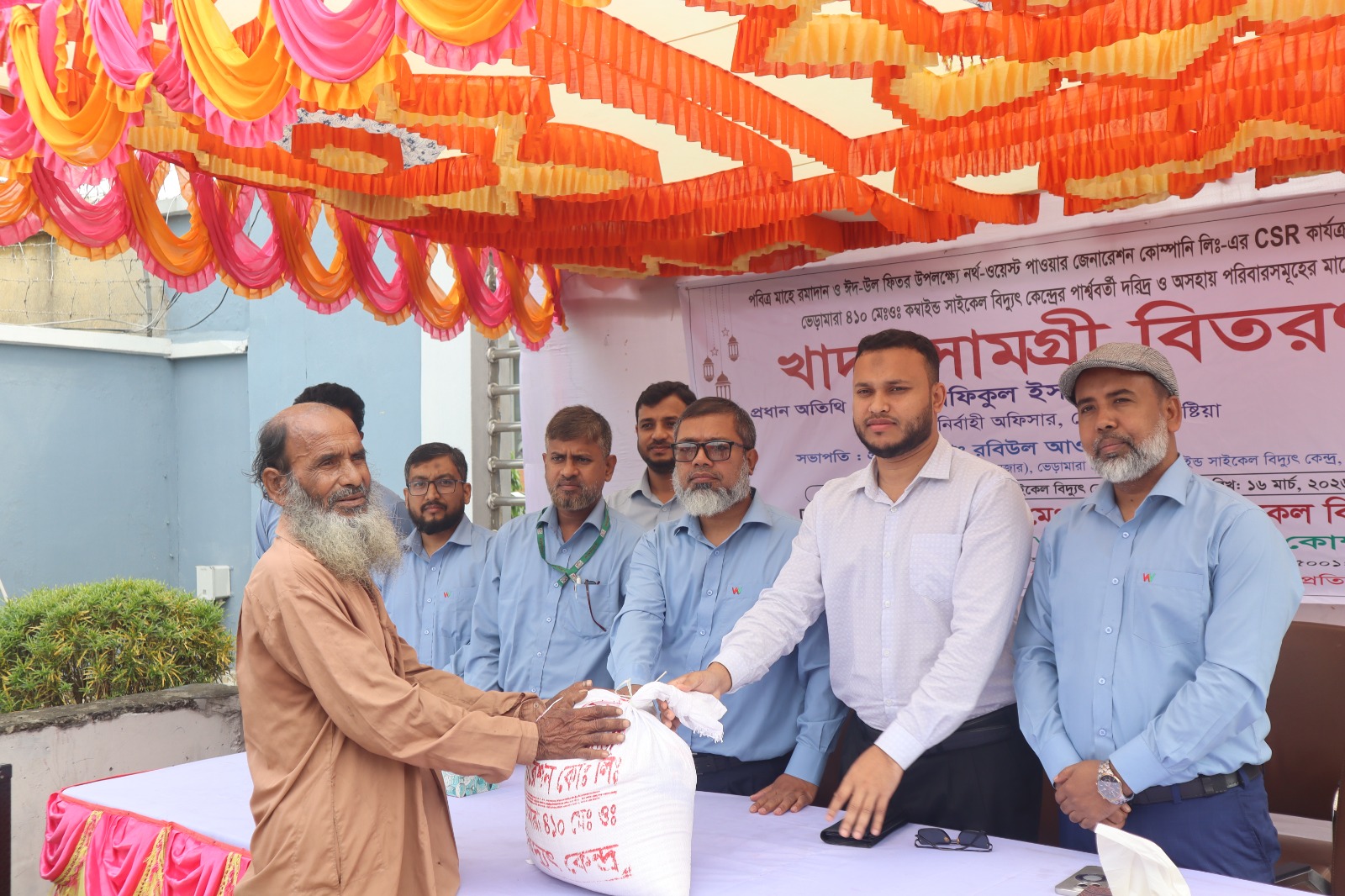 নর্থ-ওয়েস্ট পাওয়ার জেনারেশন কোম্পানি লিমিটেড-এর সিএসআর কার্যক্রমের আওতায় কোম্পানির আওতাধীন ভেড়ামারা ৪১০ মেঃওঃ কম্বাইন্ড সাইকেল বিদ্যুৎ কেন্দ্র-এর উদ্যোগে গত ১৬.০৩.২০২৬ তারিখে উল্লিখিত বিদ্যুৎ কেন্দ্র পার্শ্ববর্তী দরিদ্র ও অসহায় ৩০০ পরিবারের মধ্যে পবিত্র ঈদ-উল-ফিতর-২০২৬ উপলক্ষে মানবিক সহায়তা হিসেবে ৩০০ প্যাকেট খাদ্য সামগ্রী বিতরণ করা হয়।