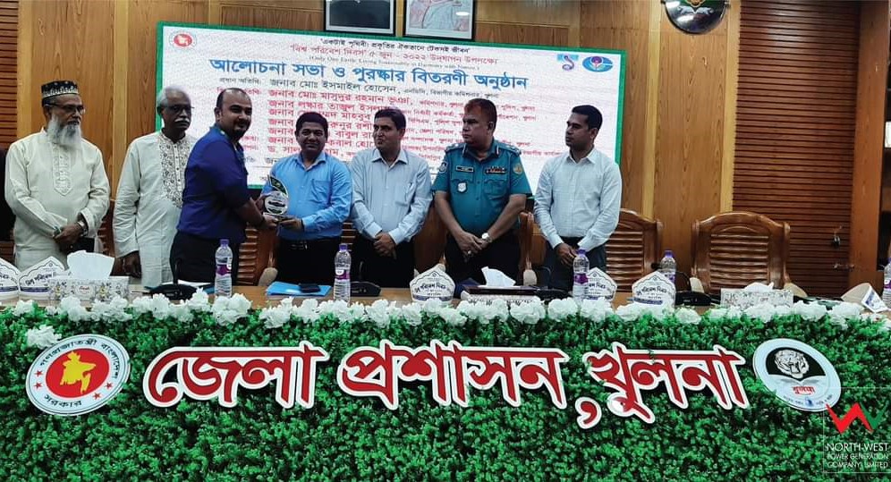 Madhumati 100 MW HFO Powered Power Plant under North-West Power Generation Company Limited has achieved the National Environment Medal-2022 (Divisional Honor) for environmental protection and pollution control at the institutional level in Khulna Division.